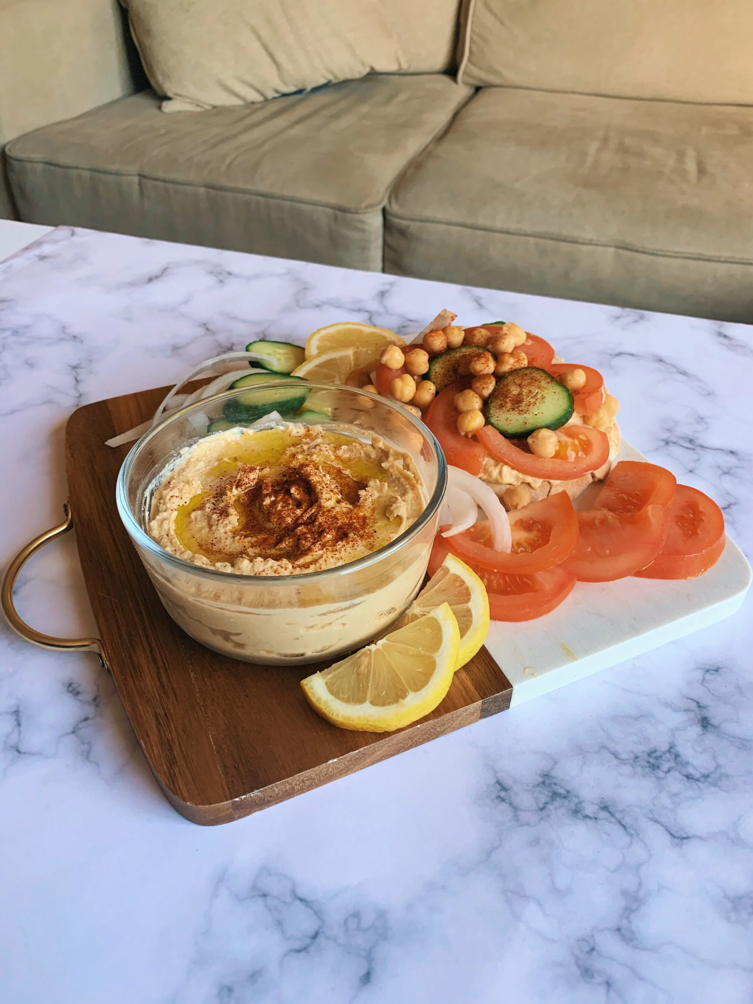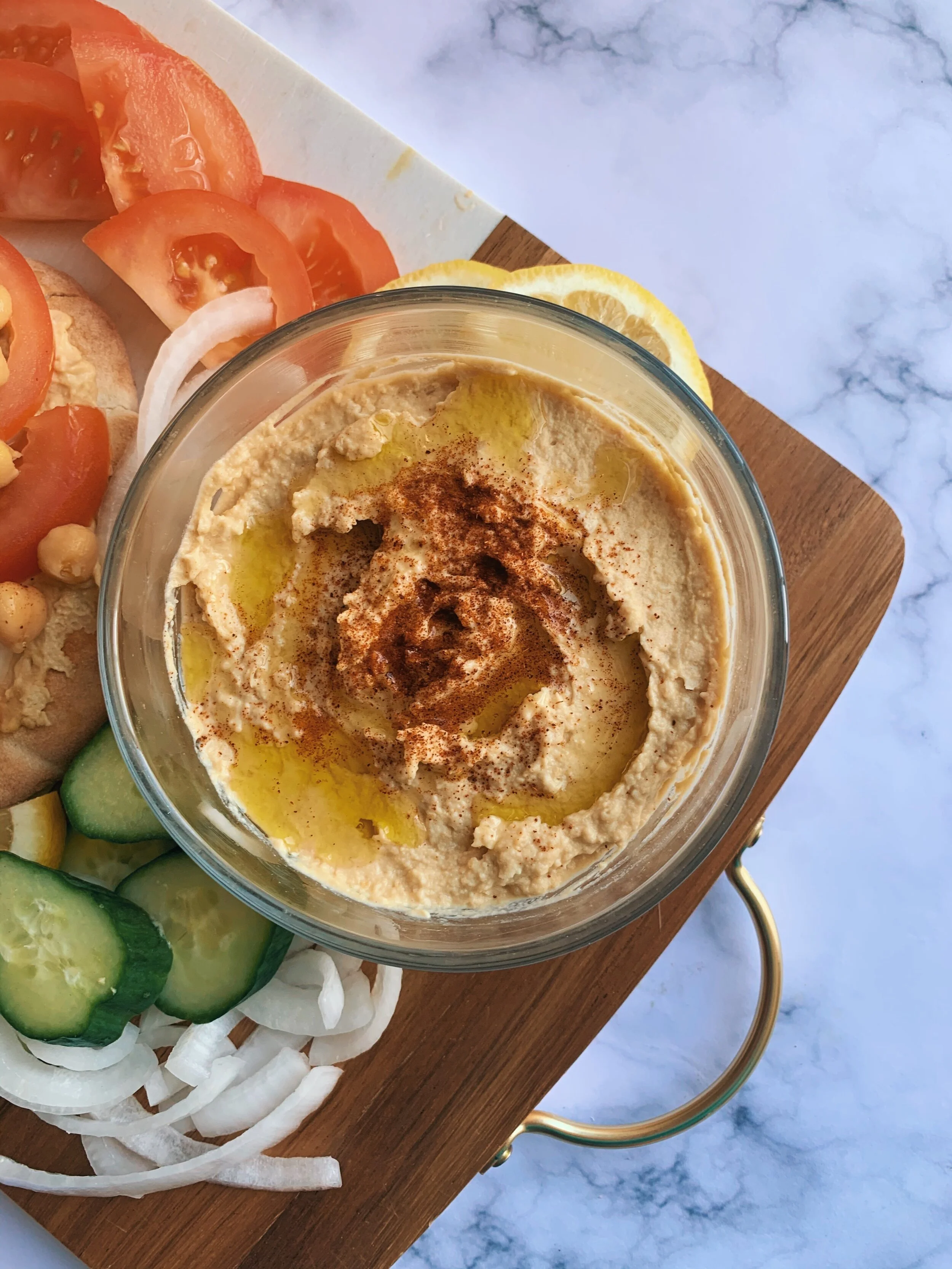 Blend for a few minutes, occasionally scraping down the sides of your blender to make sure everything is incorporated. While you are doing this, you can slowly add the liquid from the chickpea can (1 tbsp at a time) to make blending easier until hummus has reached optimum creaminess.